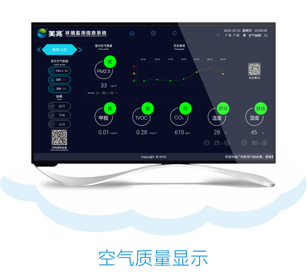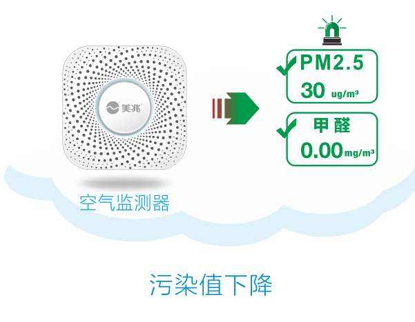 通过物联网技术将空气质量监测系统与空调、新风、排风、净化器等设备组成闭环,实时监控温度、湿度、颗粒物、二氧化碳、甲醛、TVOC等指标,并根据预设指标实时调节相关设备,从而保证空气质量实时达标。